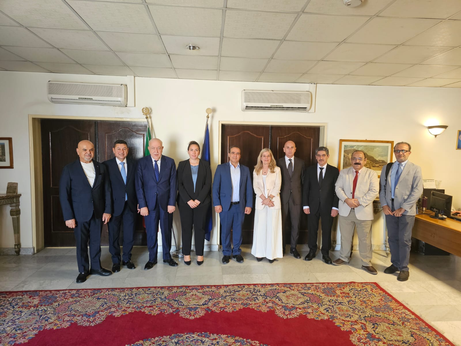 The Iraq–Italy Business Council (IIBC) recently held a productive meeting with representatives of the Italian Embassy in Baghdad and SACE, Italy’s leading export credit agency. The discussions focused on enhancing economic cooperation, expanding bilateral trade, and creating opportunities for Iraqi and Italian companies to collaborate across key sectors.